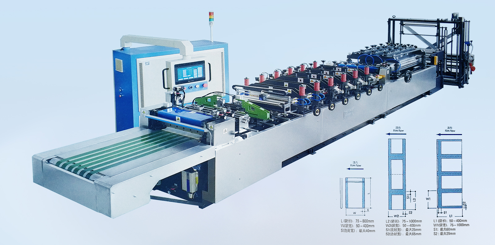 YSZD-400B Ⅱ中封、三邊封、四邊封高速全自動制袋機 YSZD-300/400/500ZF中封、側(cè)封、四邊封高速全自動制袋機 YSZD-500ZF中封、側(cè)封、四邊封高速全自動制袋機 YSZD-500/600/700/800/1000H三邊封高速全自動制袋機 YSZD-600C無接縫站立袋三邊封、站立袋高速全自動制袋機 YSZD-500HK三邊封、站立袋、拉鏈袋、無接縫站立拉鏈袋、儲料架高速全自動制袋機 YSZD-600HB三邊封、站立袋、拉鏈袋高速全自動制袋機 YSZD-600HK三邊封、站立袋、拉鏈袋、無接縫站立拉鏈袋高速全自動制袋機 YSZD-600HK Ⅰ上下圖案跟蹤三邊封、站立袋、拉鏈袋、無接縫站立拉鏈袋高速全自動制袋機 YSZD-600HK Ⅱ CCD視覺定位裁切三邊封、站立袋、拉鏈袋、無接縫站立拉鏈袋高速全自動制袋機 YSZD-800HK三邊封、站立袋、拉鏈袋、無接縫站立拉鏈袋高速全自動制袋機